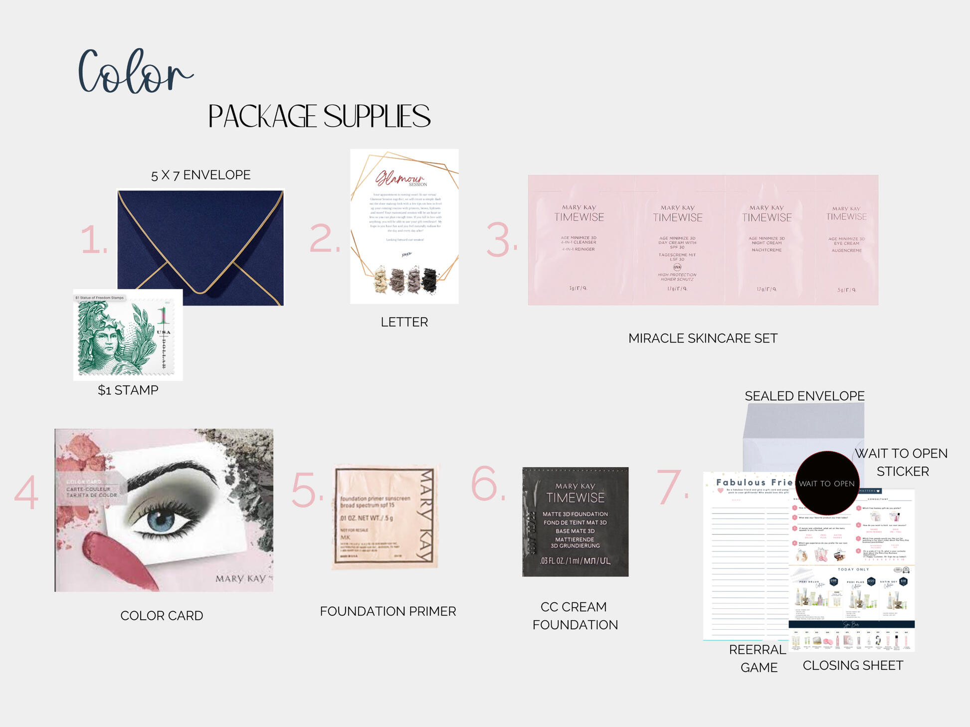 (Tools below for matching the her perfect shade)- Color Card - Which includes 3 eye shadows, 1 blush,1 lipstick.